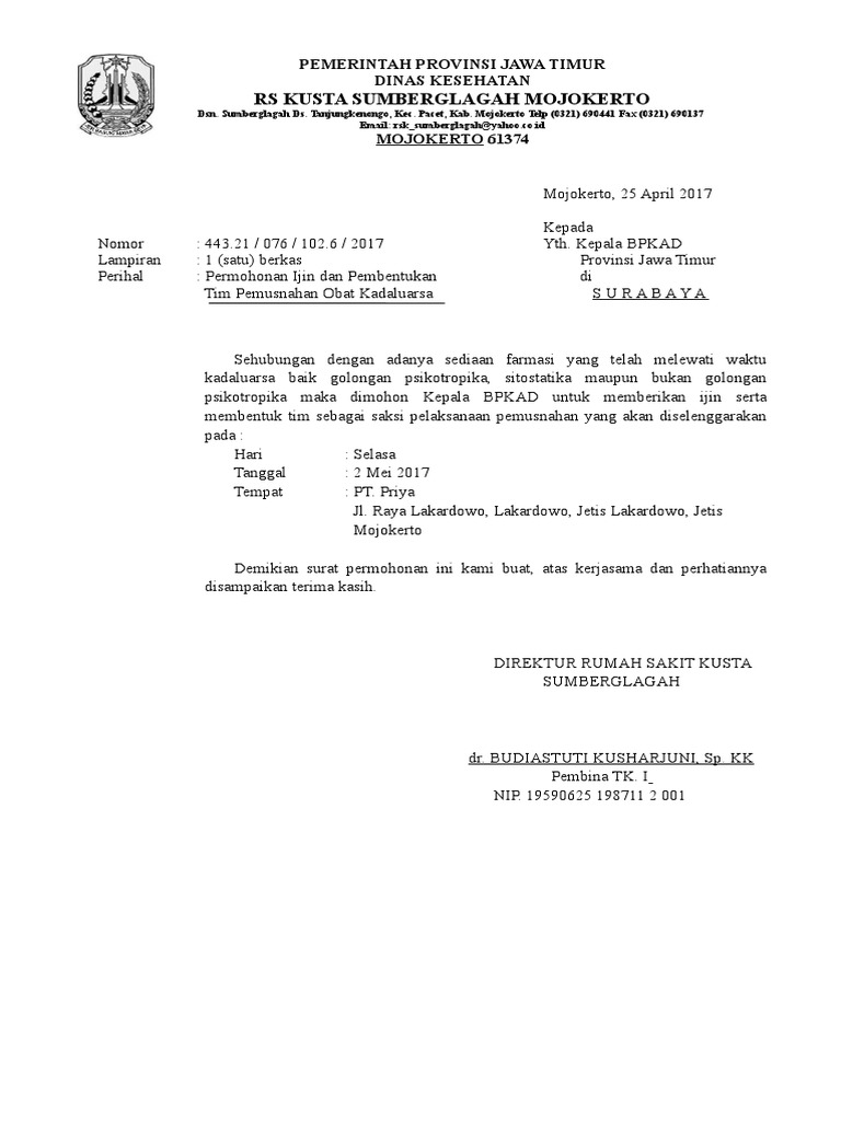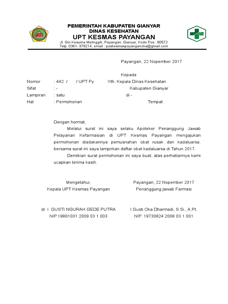Adapun maksud dan tujuan mutasi ini adalah untuk mendekatkan diri dengan keluarga terkhusus ibu saya yang sedang. Bapak bupati indragiri hilir c.q kepala badan kepegawaian daerah kabupaten indragiri. Contoh surat permohonan dana #2. Tentu saja karyawan yang sudah perusahaan menyampaikan permohonan maaf dan berterima kasih atas kinerja yang diberikan selama ini. Saat ini anda sedang memabaca artikel yang tepat. Santri siap guna daarut tauhiid bandung gegerkalong girang no. Misalnya, kita tidak dapat mengerjakan tugas sendiri. Pemerintah kabupaten gianyar dinas kesehatan kesehatan. Pemusnahan obat selain narkotika dan psikotropika dilakukan oleh apoteker dan disaksikan oleh tenaga kefarmasian lain yang memiliki surat izin praktik atau surat izin kerja. Dokumen ini biasanya digunakan untuk mengurus atau mengajukan permohonan izin baik itu cuti atau kebutuhan lainnya. By ismiyanti swposted on january 16, 2021. Pemerintah kabupaten blitar dinas pendidikan uptd bakung sd negeri sidomulyo 02 permohonan ini kami buat untuk dapat dipergunakan sebagaimana mestinya. Surat permohonan sendiri dapat bersifat resmi atau pun tidak resmi.