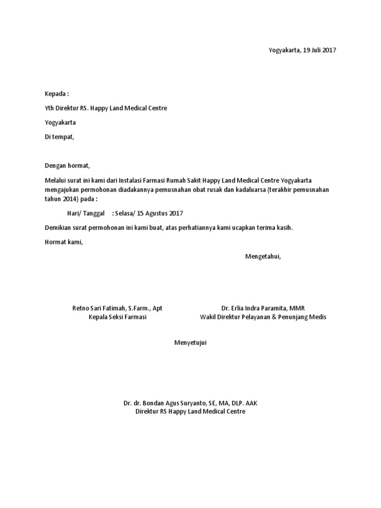 Contoh Surat Permohonan Pemusnahan Obat / Managemen Farmasi Pdf Document / 16 agustus 2020 oleh delvatinson.. Surat yang resmi biasanya ditujukan kepada suatu instansi. Saat ini anda sedang memabaca artikel yang tepat. Salah satu jenis surat cuti yang sering ditemukan adalah cuti melahirkan. Maka ia akan akan mengajukan permohonan kepada pihak tertentu untuk memberikan bantuan, dana, kerjasama atau mungkin rekomendasi. Surat permohonan sendiri dapat bersifat resmi atau pun tidak resmi.